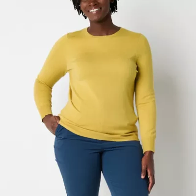 Worthington Womens Crew Neck Long Sleeve Pullover Sweater