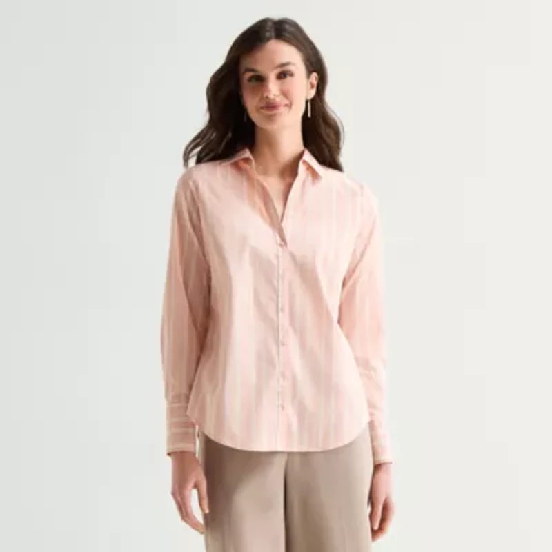 Worthington Womens Cuffed Long Sleeve Regular Fit Poplin Button-Down Shirt