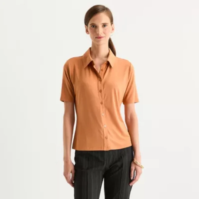 Worthington Womens Fitted Short Sleeve Regular Fit Button-Down Shirt