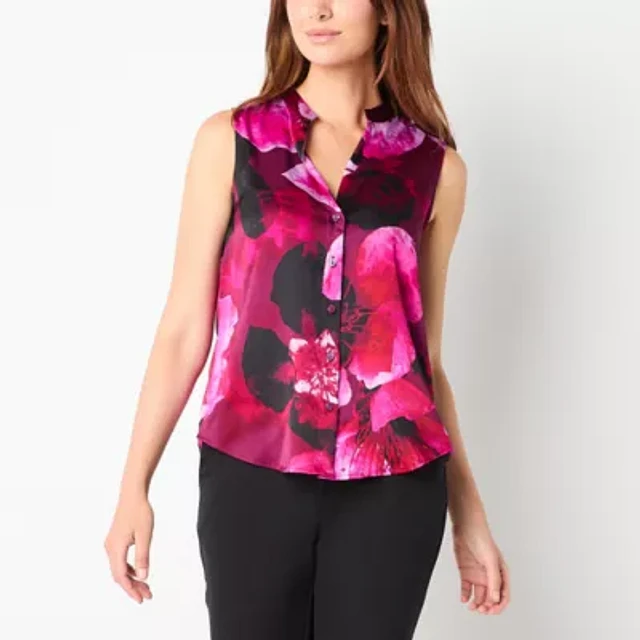 Worthington Womens Round Neck Short Sleeve Satin Blouse