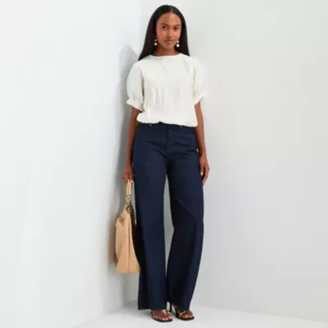 Worthington Womens High Rise Wide Leg Jean