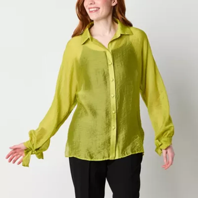 Worthington Womens Long Sleeve Tie Sleeve Regular Fit Button-Down Shirt