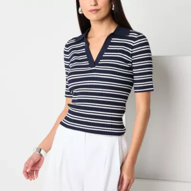 Worthington Womens Short Sleeve Striped Pullover Sweater