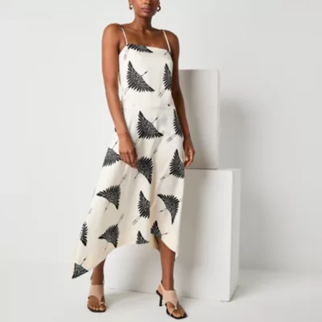 Worthington Womens Sleeveless Geometric Midi Maxi Dress