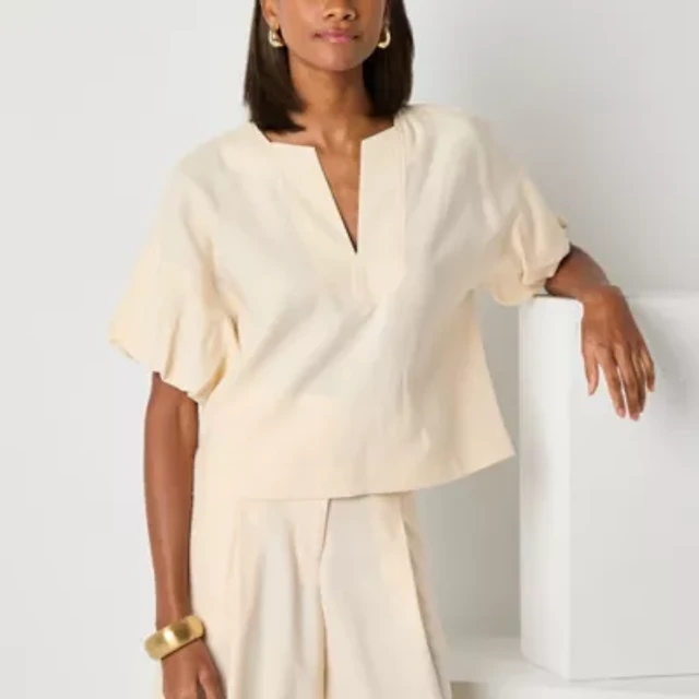 Worthington Womens Split Crew Neck Short Sleeve Blouse