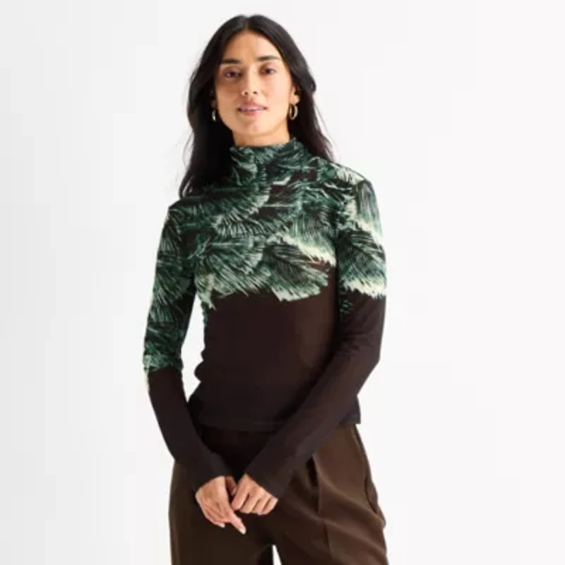 Worthington Womens Turtleneck Long Sleeve Blouse