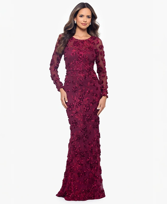 Xscape Petite Raised Flower Crewneck Long Gown Dress