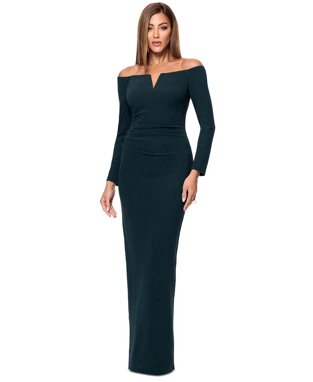 Xscape Women's Off-The-Shoulder Metallic Long-Sleeve Gown