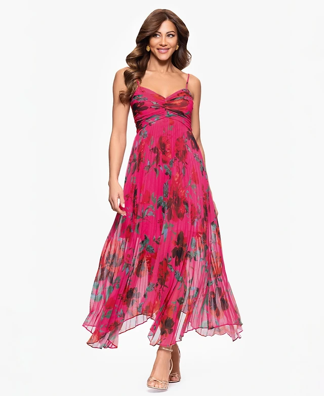 Xscape Plus Printed Off-The-Shoulder Pleated Dress