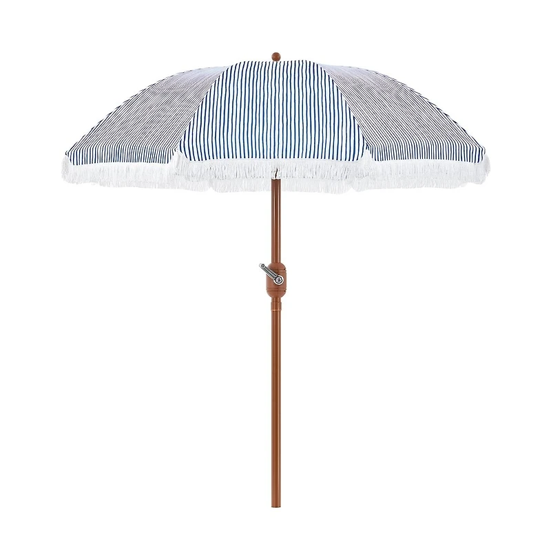 Bring a romantic breeze to your outdoor setting with this 7.5ft French-style umbrella. Featuring a round dome, elegant pinstripes, and flowing braided tassels, it offers flexible shade with crank-and-tilt ease. Durable fiberglass ribs and a sturdy pole provide lasting support for charming afternoons on patios, gardens, or cafe terraces.