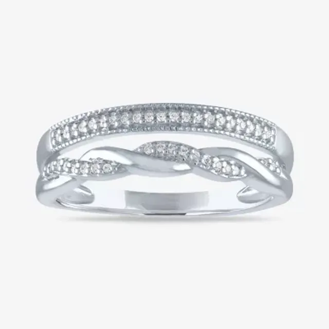 Womens 2MM Diamond Accent Natural White Diamond Sterling Silver Crossover Band