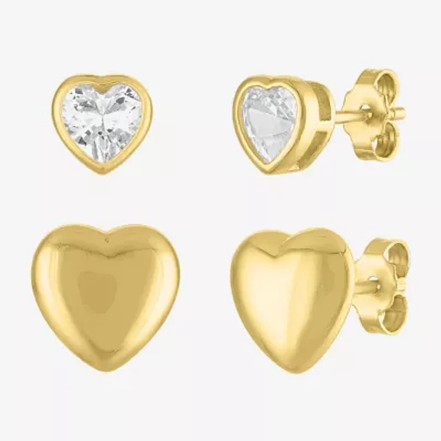 Yes Please! Lab Created White Sapphire 14K Gold Over Silver Sterling Silver Heart 2 Pair Earring Set