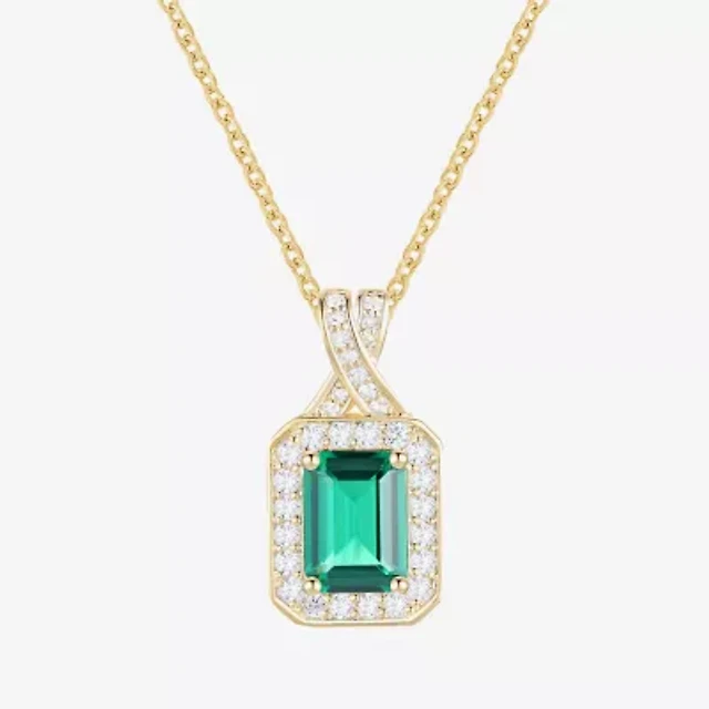 Yes Please! Womens Lab Created Green Emerald 14K Gold Over Silver Sterling Silver 18 Inch Pendant Necklace