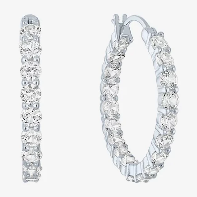 Womens Lab Created White Sapphire Sterling Silver 23.2mm Hoop Earrings