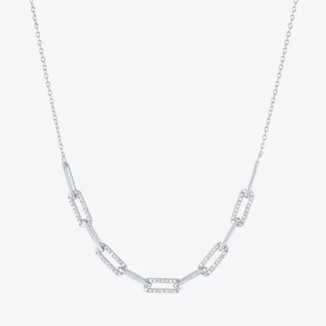 Yes Womens Lab Created White Sapphire Sterling Silver Paperclip Pendant Necklaces