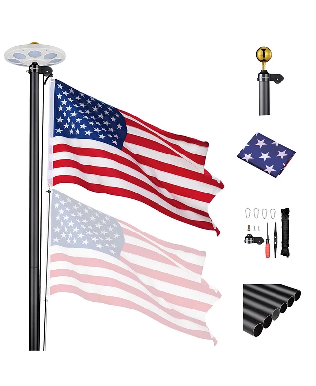 Yescom Bravery 20ft Led Solar Light Sectional Flag Pole Kit Aluminum Outside Inground with 3'x5' Usa Flag Ball Top Black
