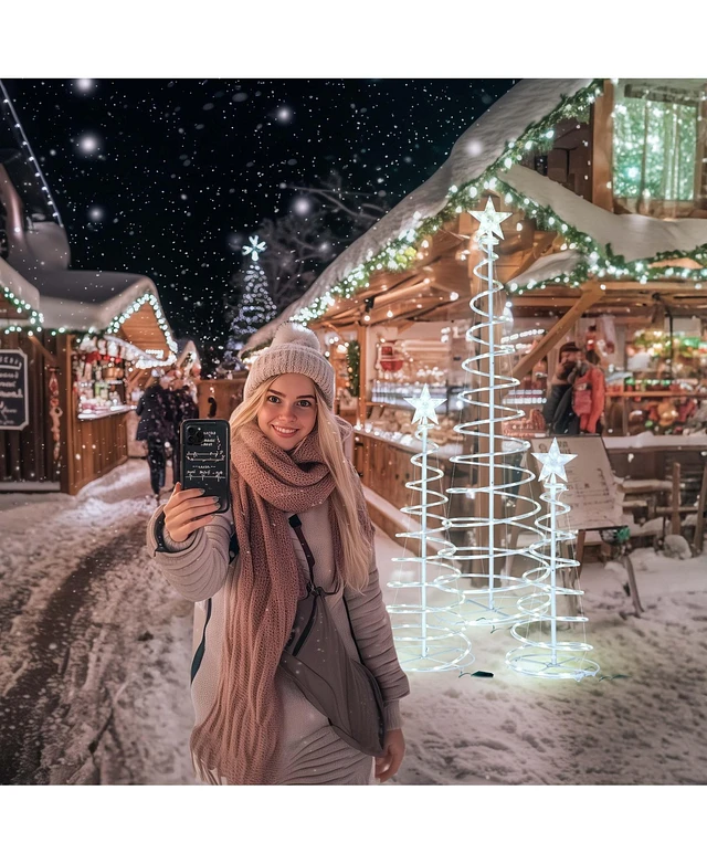 Yescom Sparkle 15 Pack Led Christmas Spiral Light Kit Battery 3'/4'/6Ft Pre-Lit Led with Star Topper for Indoor Outdoor