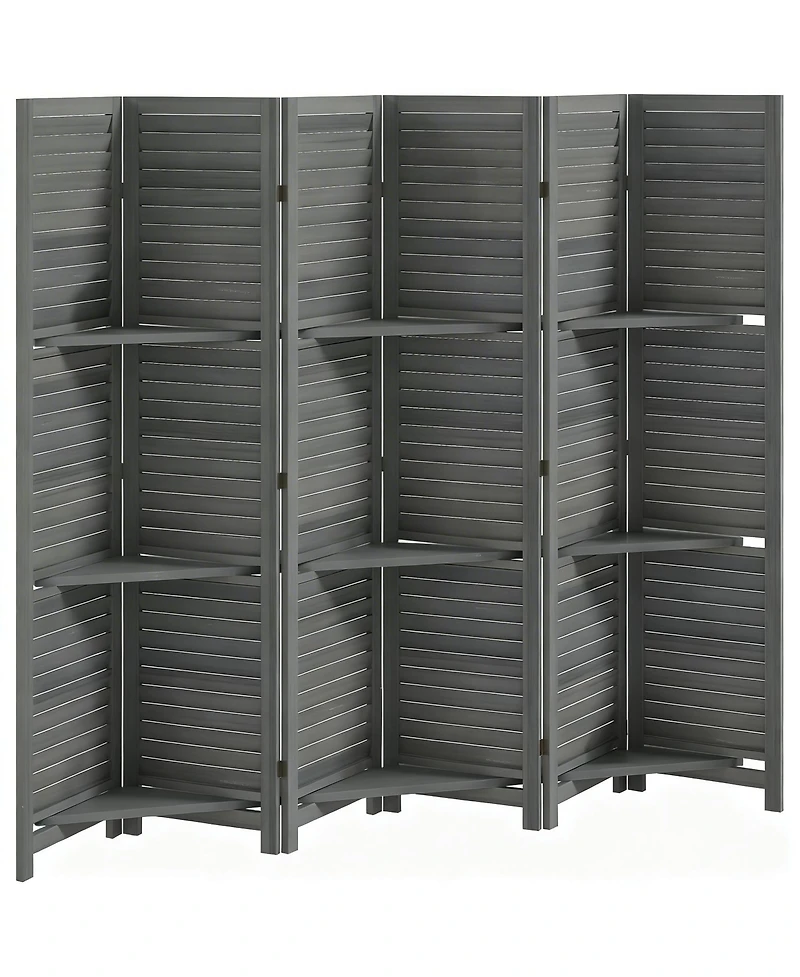 Yigii Wood Room Divider with Shelves and Folding Design