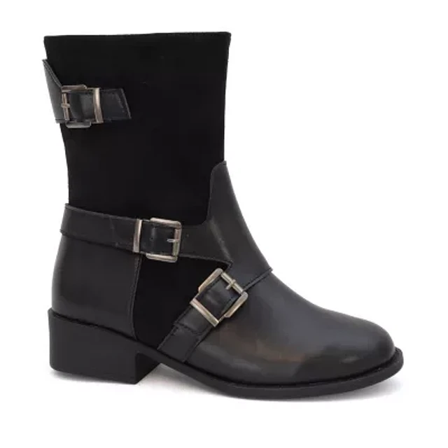 Yoki Womens Blakely Block Heel Cushioned Buckle Water Resistant Combat Boots