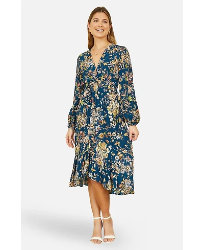 Yumi Women's Long Sleeve Midi Floral Dress