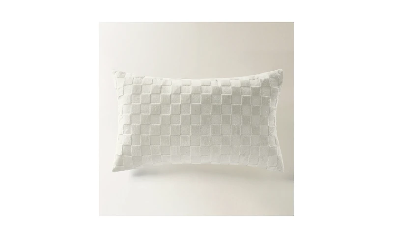 The Checker Velvet Lumbar Pillow in white brings a refined, polished edge to any interior styling scheme, effortlessly elevating beds, benches, and layered seating arrangements with understated sophistication. This Z Gallerie exclusive showcases a sleek modern grid design that pairs beautifully with the luxuriously soft velvet finish, creating a subtle interplay of texture and geometry that complements both contemporary and transitional decor. Designed for both aesthetic appeal and everyday comfort, it comes complete with a removable feather-down insert that offers plush, supportive cushioning while maintaining a full, luxurious shape. Whether used as a focal point on a bed, an accent on a window bench,this lumbar pillow balances tailored style with cozy comfort, making it a versatile and essential addition to any thoughtfully curated room.