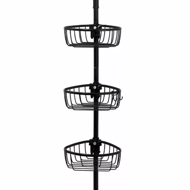 Zenna Home 3 Tier Aluminum Black Tension Pole Shower Caddy
