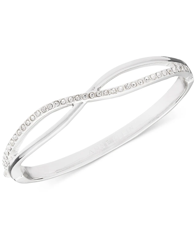 Anne Klein Silver-Tone Pave & Navette Color Crystal Open Bangle Bracelet