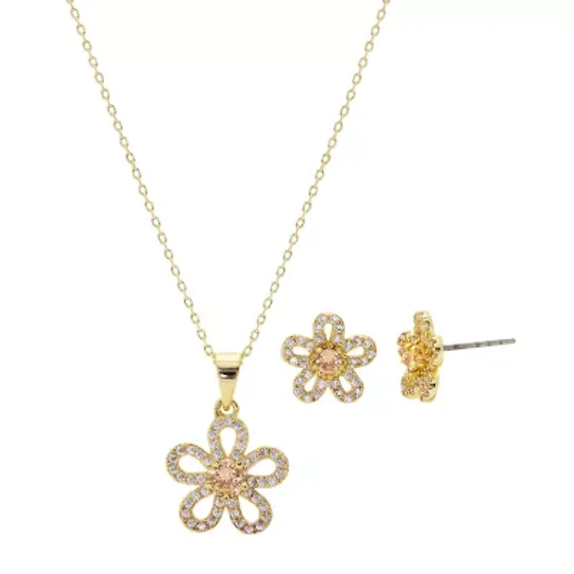 Disney Classics Womens Cubic Zirconia 14k Rose Gold Over Brass Pure Silver Over Brass Bow Minnie Mouse 2-pc. Jewelry Set