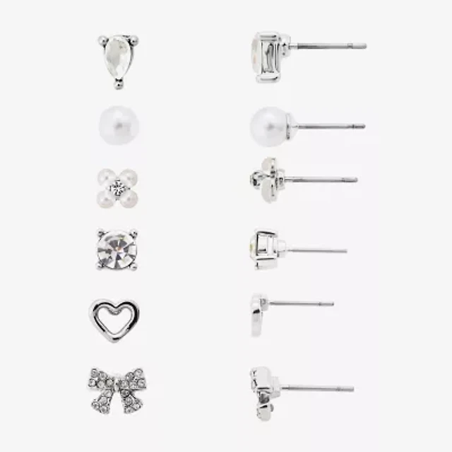 Mixit Womens White Simulated Pearl Bow Drop Earrings