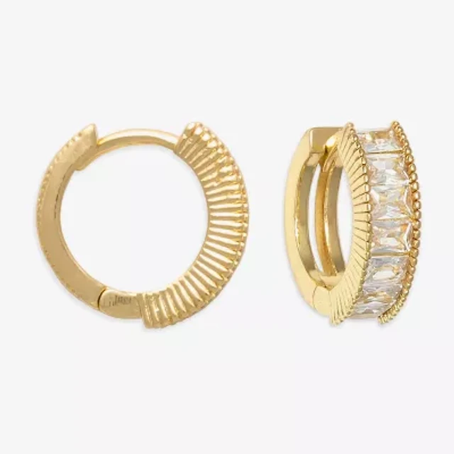 Yes, Please! Womens Lab Created White Sapphire Sterling Silver 18mm Hoop Earrings