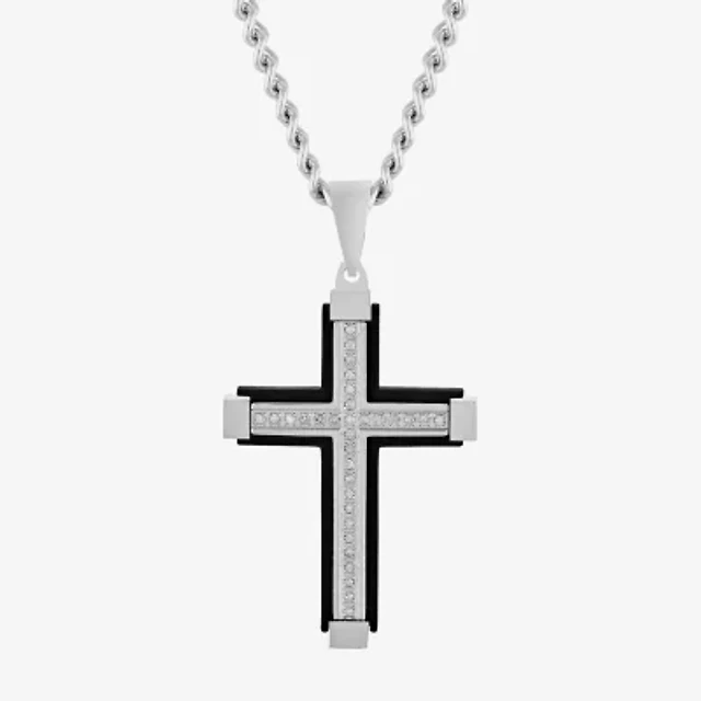 (H-I, I2-I3) Mens Diamond Accent Natural White Diamond Stainless Steel 24 Inch Pendant Necklace