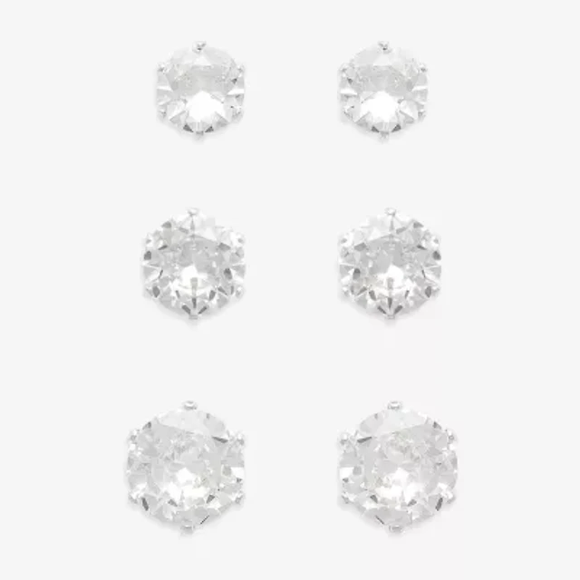 Yes, Please! Womens Lab Created White Sapphire Sterling Silver Round 3 Pair Earring Set
