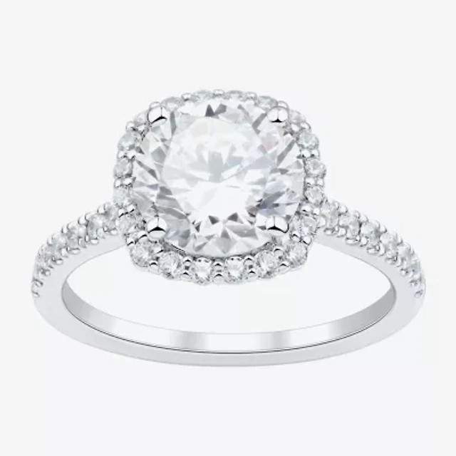 (F / Vs2) Womens 3 CT. T.W. Lab Grown White Diamond 14K Gold Round Side Stone Halo Engagement Ring