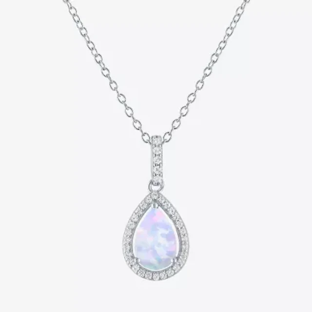 Yes, Please! Womens Lab Created White Opal Sterling Silver Pear 18 Inch Pendant Necklace