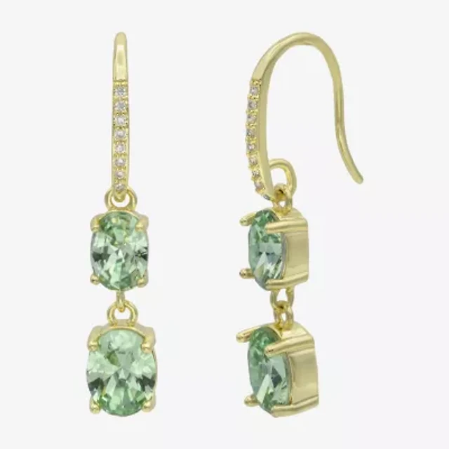 Sparkle Allure Womens Green Cubic Zirconia 14K Gold Over Brass Oval Drop Earrings