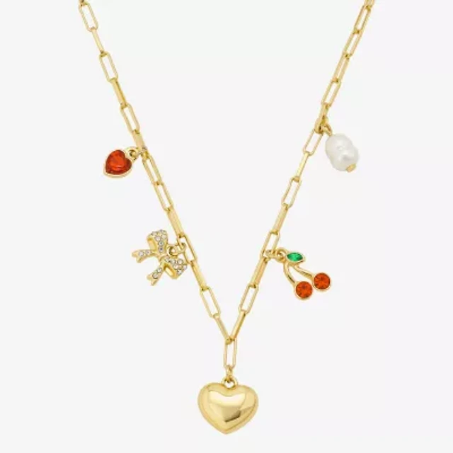 Monet Jewelry Gold Tone Initial Pendant Necklace & Stud Earring Womens Glass Heart 2-pc. Set