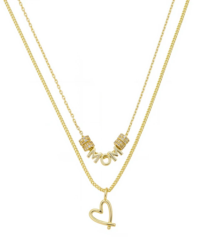 Unwritten Cubic Zirconia Mom and Heart Pendant Layered Necklace Set
