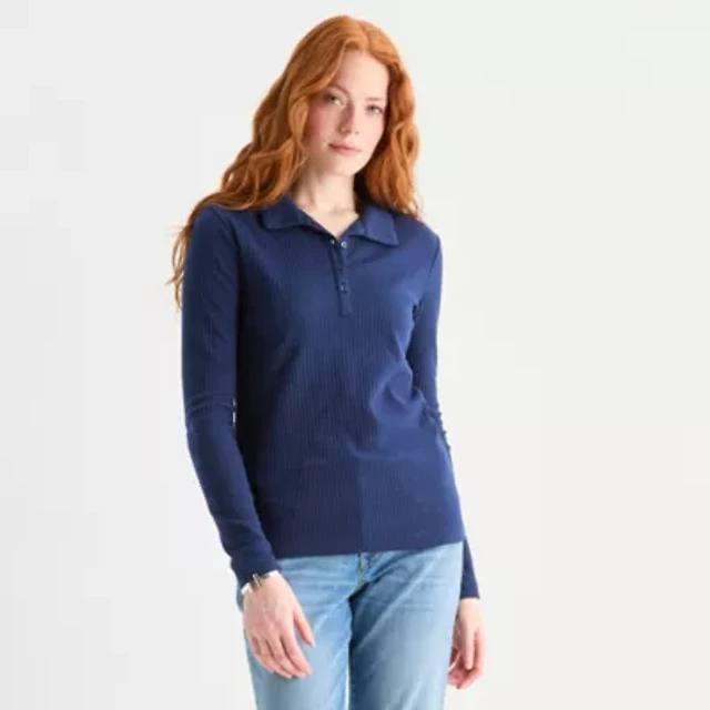 St. John's Bay Womens Long Sleeve Regular Fit Button-Down Shirt