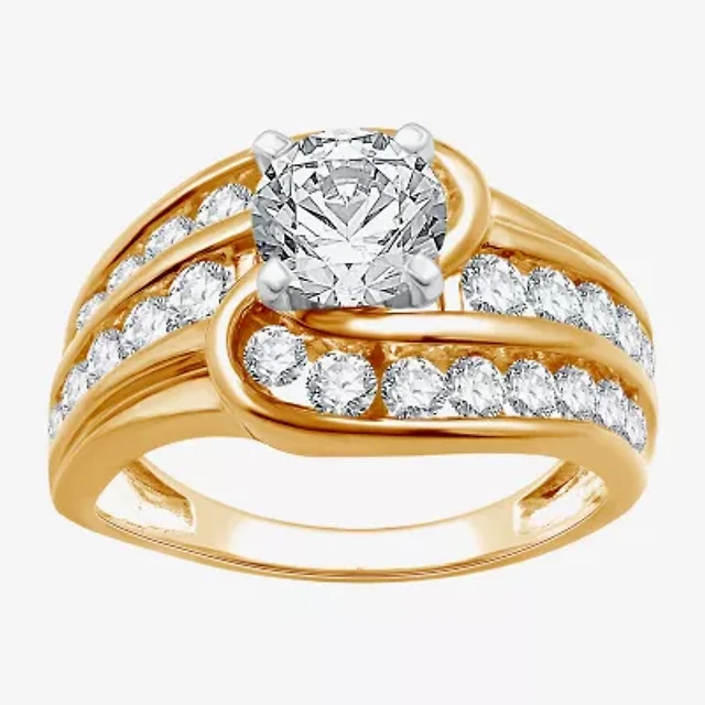 (I / Si2) Womens 2 CT. T.W. Lab Grown White Diamond 10K Gold Round 3-Stone Engagement Ring
