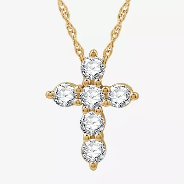 Womens 1/2 CT. T.W. Lab Grown White Diamond Sterling Silver Or 14K Gold Over Cross Pendant Necklace