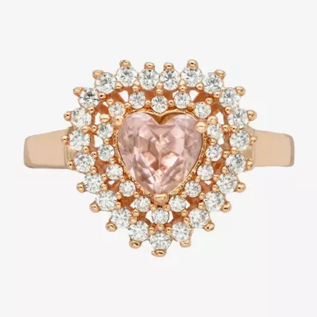 Sparkle Allure Double Halo Womens Pink Crystal 18K Rose Gold Over Brass Heart Cocktail Ring