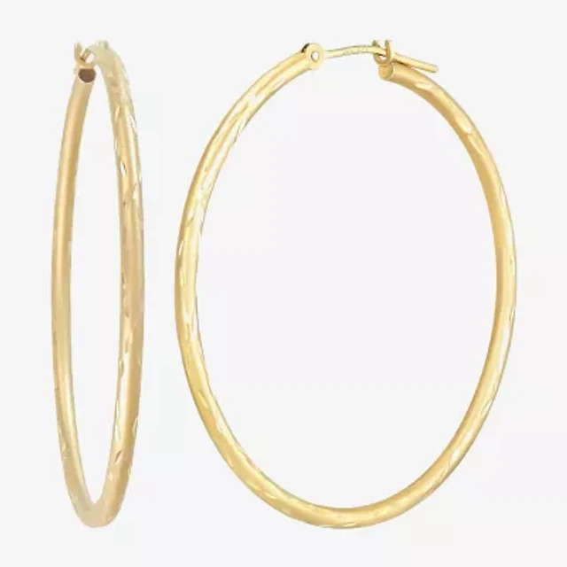 Womens Sterling Silver 40mm Round Hoop Earrings