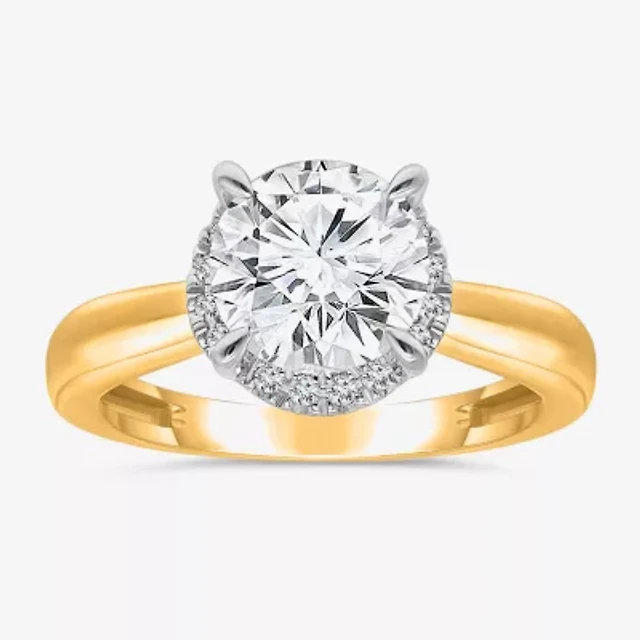 (I / I1) Womens 2 CT. T.W. Lab Grown White Diamond 10K or 14K Gold Cushion Side Stone Halo Engagement Ring