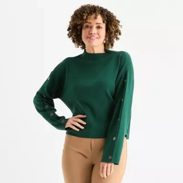 Worthington Womens Mock Neck Long Sleeve Pullover Sweater