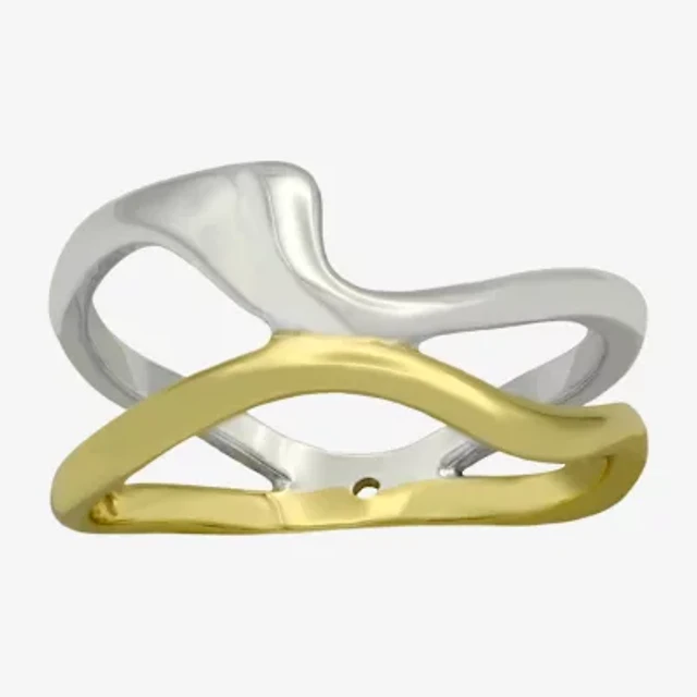 Sparkle Allure Irregular Womens 3.5MM 14K Gold Over Brass Pure Silver Crossover Band