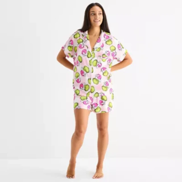 Disney Mjc Womens Easy-on + Easy-off Grinch Short Sleeve 2-pc. Pajama Sets