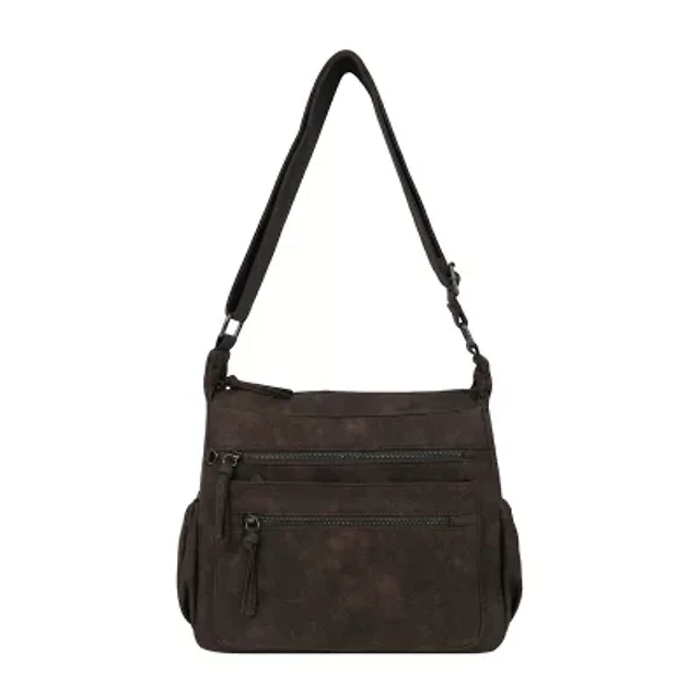Bueno of California Distress Pebble Washed Double Zip Crossbody Bag