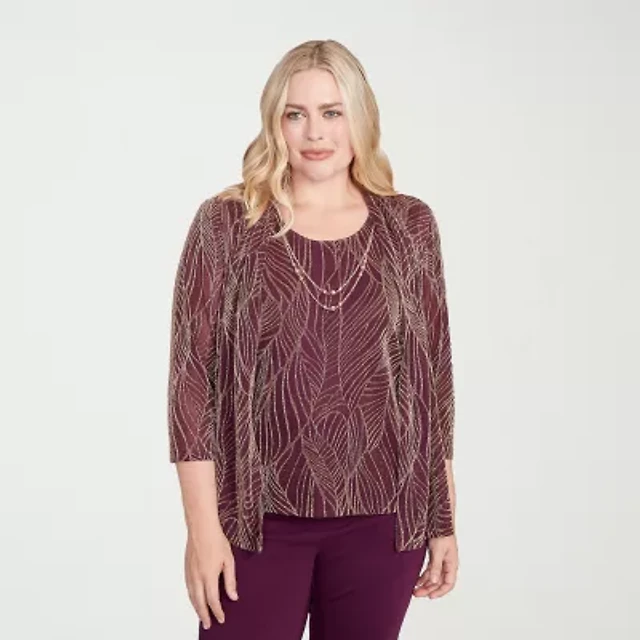 Alfred Dunner Business As Usual Womens 3/4 Sleeve Layered Top