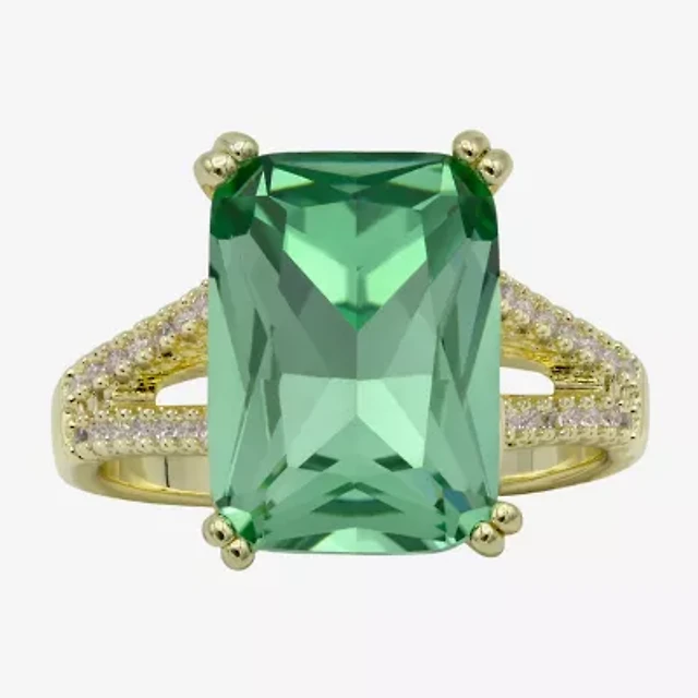 Sparkle Allure Womens Green Crystal 14K Gold Over Brass Cocktail Ring