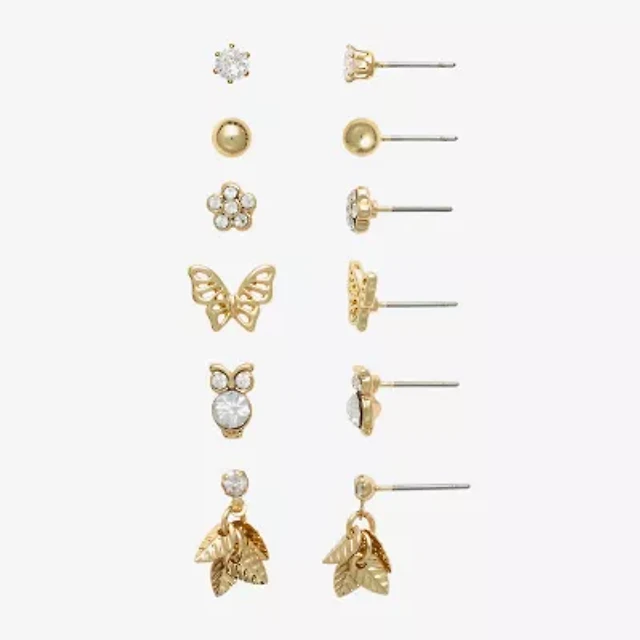 Liz Claiborne Stud & Hoop Womens Glass Hypoallergenic 3 Pair Earring Set